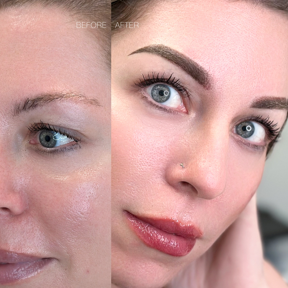 Crafted using the Machine Hair-Strokes technique, this service delivers stunningly realistic brows with precise, delicate strokes. Perfect for those seeking a defined yet natural look. A second touch-up at 6 weeks is available for $75.